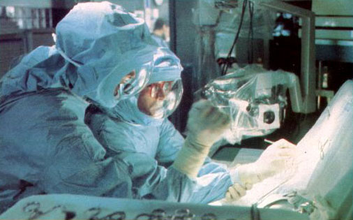 Peter Weller rescues Robert Ito during The Adventures of Buckaroo