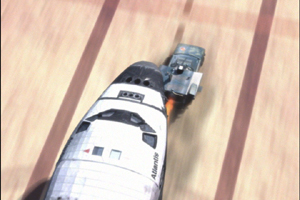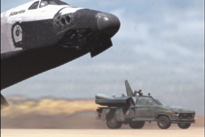 ((Glen Note: this last sequence is amazing: there is a lot of detail on the shuttle, and small things like the Jet Car's suspension lowering under the wheight of the shuttle's nose give many shots a close to photo-realistic feel. Well, here - see for yourself!))
