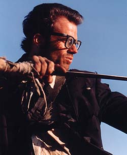 None the less, below you will find a few pictures of the actor whose name has turned up *most* in my "inbox" as the Coaxial reader / Banzai fan-preferred re-cast of Peter Weller's Buckaroo Banzai character. This actor's name is Jeff Falcon. He recently starred in a movie called SIX STRING SAMURAI. You can learn more about the film and Mr. Falcon through this link.